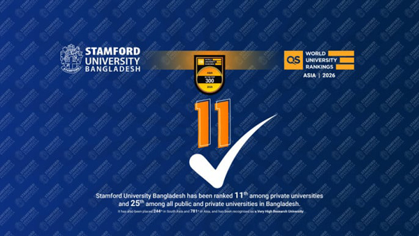 News Desk : dhakamirror.com Stamford University Bangladesh has secured the 781st position in the QS World University Rankings: Asia 2026, marking a significant milestone in its academic journey. The university ranked 244th in South Asia, 11th among private universities, and 25th among all universities in Bangladesh. Recognised by QS as a “Very High Research-Intensive University”, ... Read more