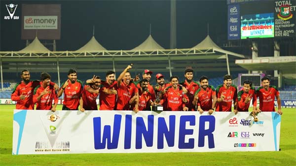 Bangladesh wrapped up a clean sweep against Afghanistan with an impressive six-wicket victory in the third and final T20 International at Sharjah Cricket Stadium on Sunday, clinching the series 3–0 in style.