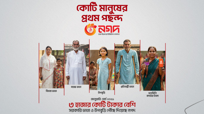 In the January–March quarter of this year, approximately 1.47 crore beneficiaries selected Nagad to receive government allowances and stipends. During this period, total government disbursements through Nagad reached Tk3,049.23 crore across several categories.